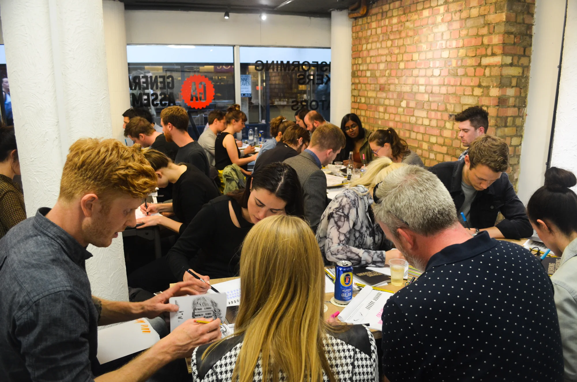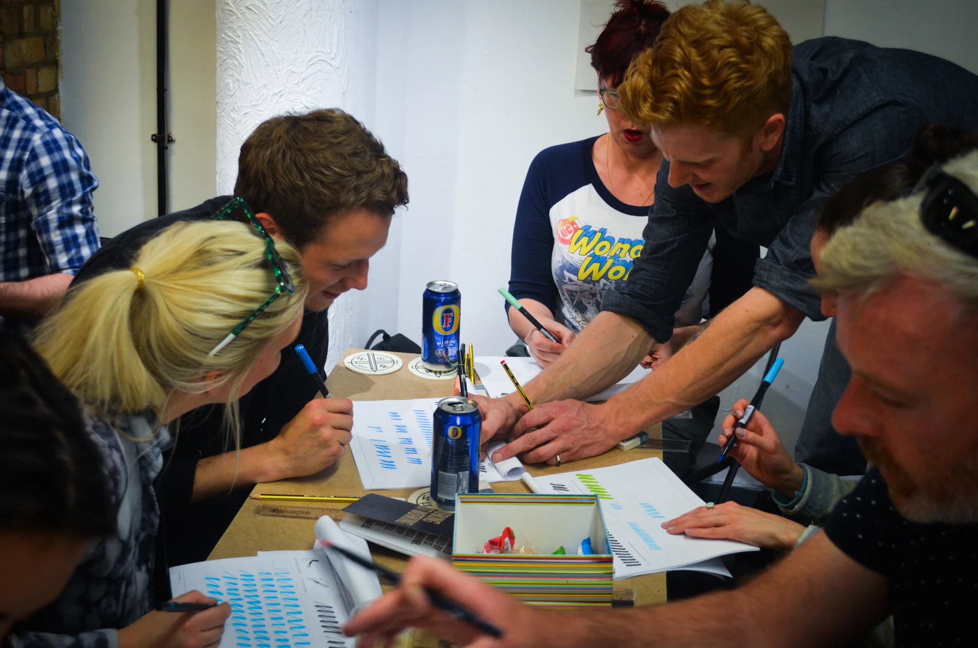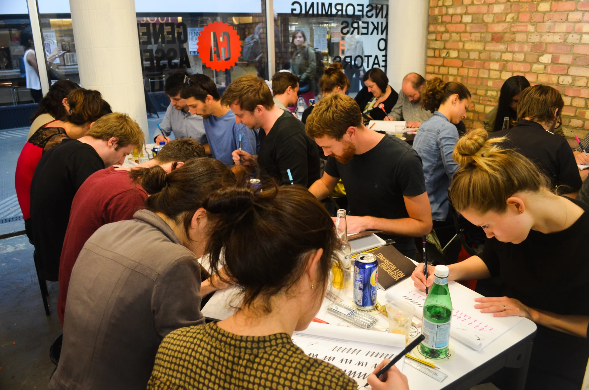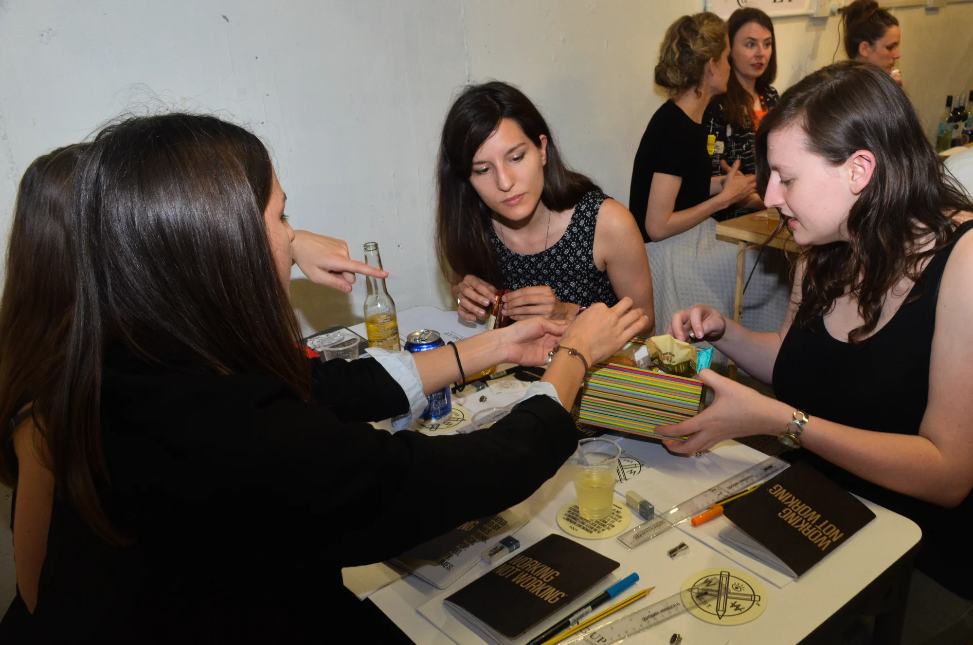 To balance the drinking with a bit of education, WNW Member #3322 Tom Lane led a workshop on the basics of typography. Courtesy of General Assembly's pop-up shop, fifty lucky guests learned the art of lettering at the Old Street Underground Station, making it an experience unlike any other. A big thank you to MJ Group for handling our coasters and signage.