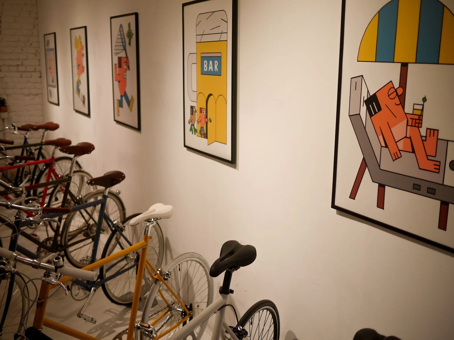 Less debauched but no less entertaining was the end-of-week cocktail party and exhibition at tokyobike in honor of WNW Member #3061 Jay Wright, whose illustrations lined the walls. It's Nice That had commissioned Jay's illustrations for an article on Working Not Working members and the realities of freelancing. Our friends at Hato Press, led by WNW Member Ken Kirton, graciously provided prints for all the attendees to take home. An additional thank you to Printer of Dreams for bringing Jay's work beautifully from digital to print.